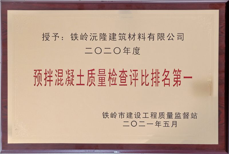 2020年度質(zhì)量檢查評比排名第一